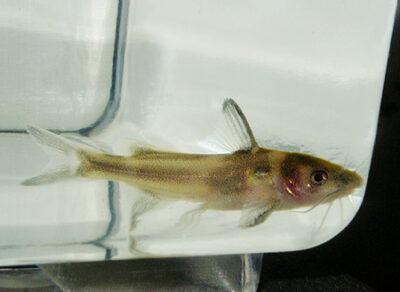 先だっても我が家のギギを紹介させて頂きましたが、今回木津川よりニューフェイスの幼魚が入居いたしました。今はご覧の通り(写真)の、か細い身体つきをしておりますが、一年も経てば、見違えるように大きくなり、黒装束に身を包み、しのびの生活に入るのですが…。